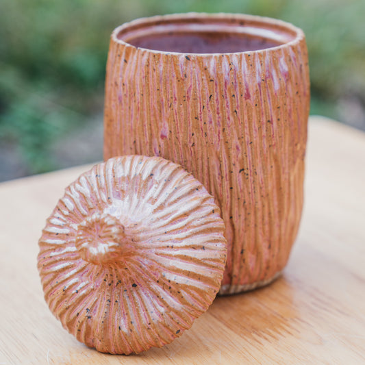 Sold outTall Carved Lidded Pot - Paprika