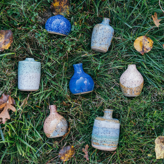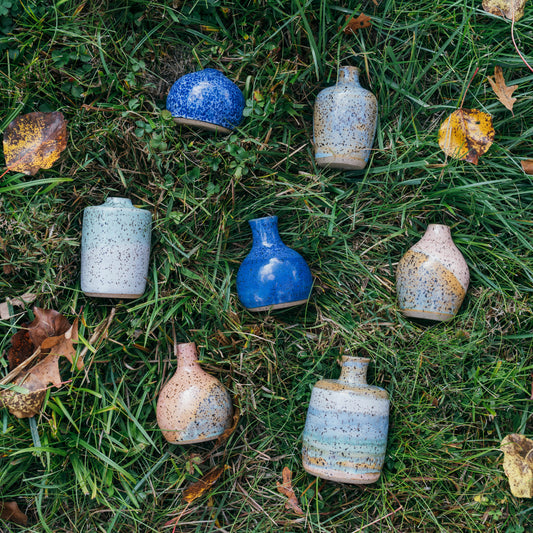 Speckled Blue Round Bud Vase