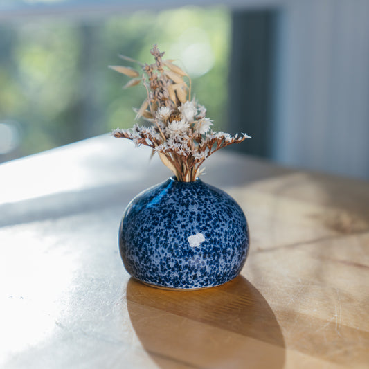 Speckled Blue Round Bud Vase
